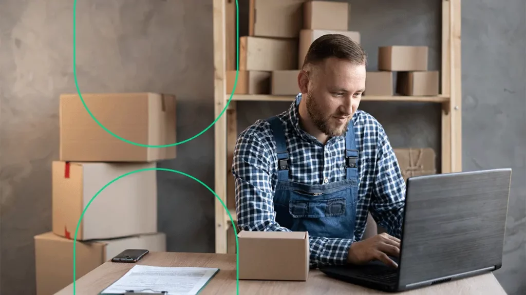 Homem de negócios no depósito de sua empresa, conferindo as novas integrações do Bling com marketplaces