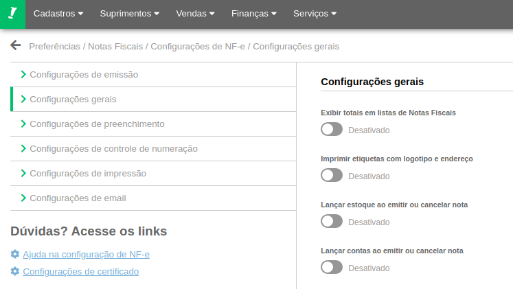 Sistema de gestão ERP Bling! – Configuração de notas fiscais